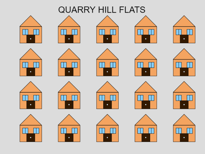 text("QUARRY HILL FLATS", width/2, 50); // display the text